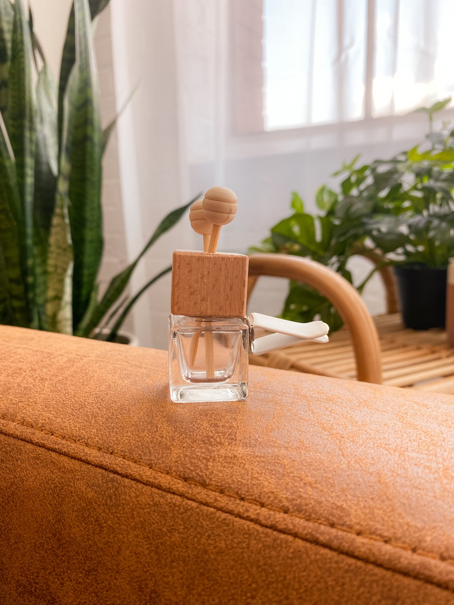 Our 6 mL car diffusers are phthalate-free. Each diffuser comes with a care card, and instructions on how to remove the plastic stopper, attach the clip, and insert wooden reeds.