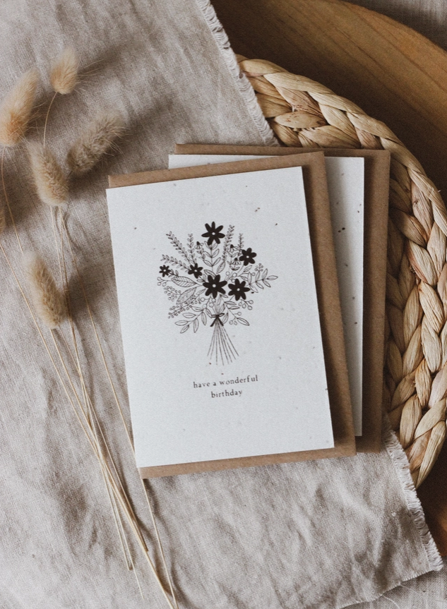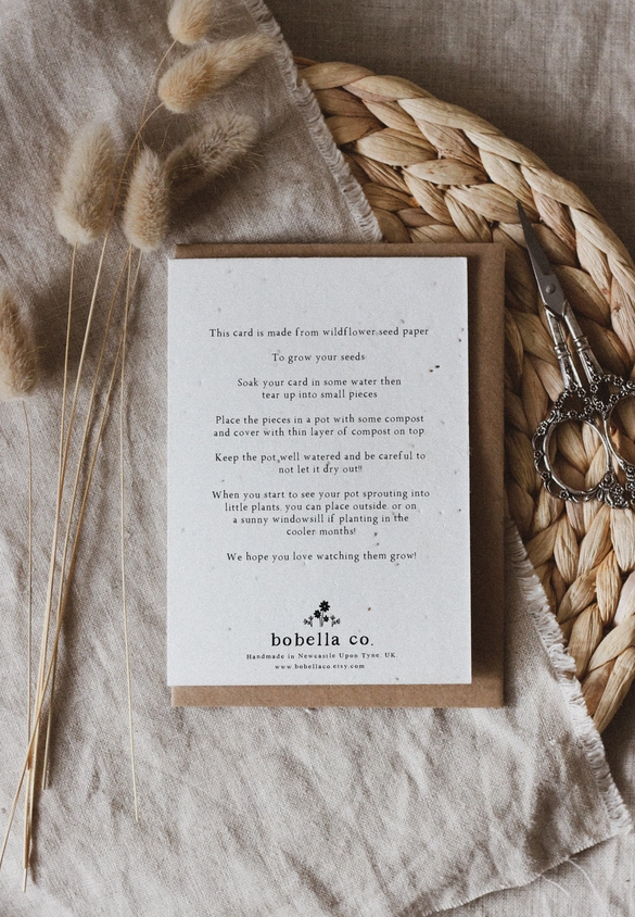 Let someone know you're thinking of them, with a plantable seed card! The seeded paper is eco-friendly, and comes in A6 size with a recycled kraft colored envelope.