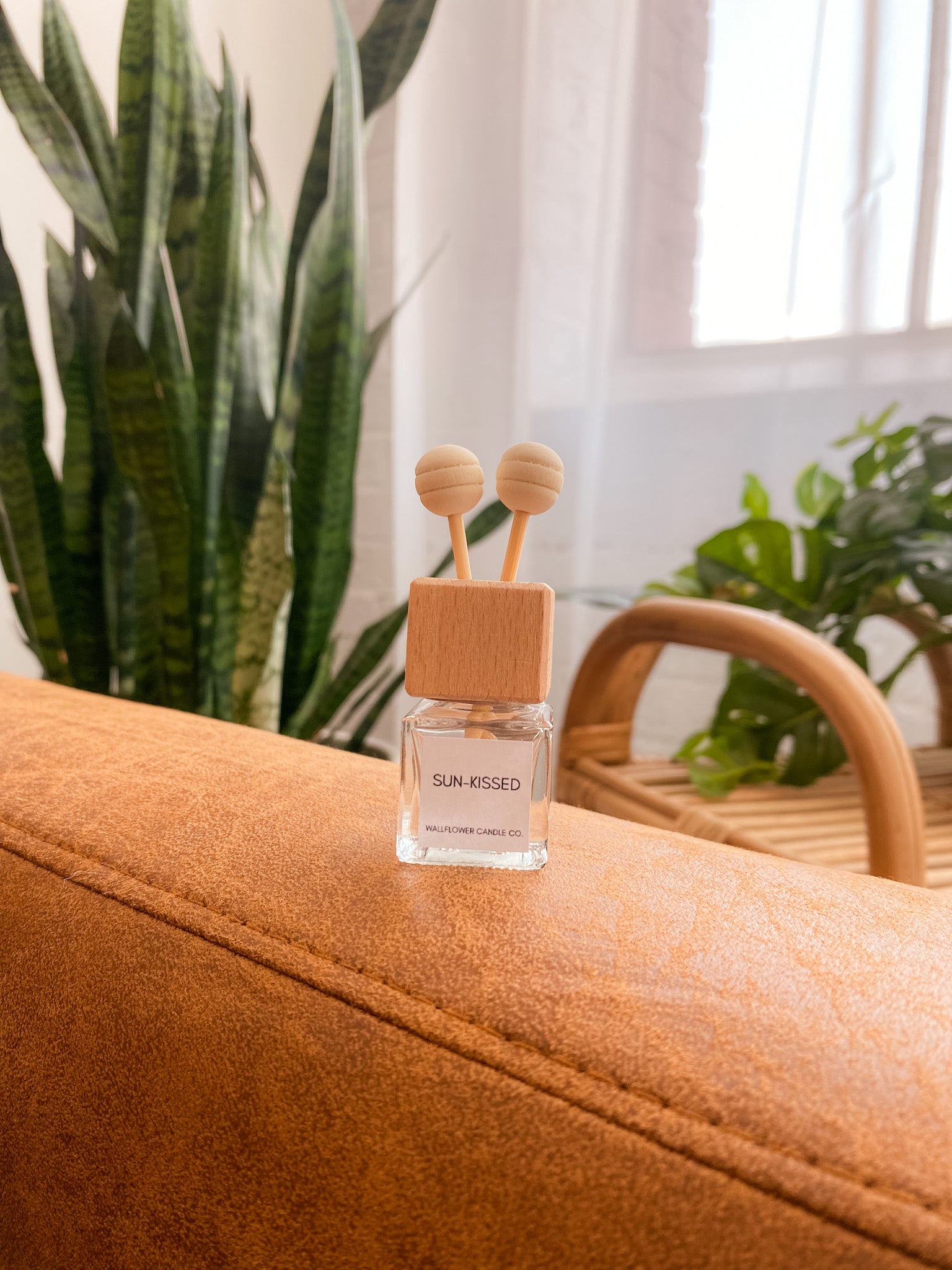 Our 6 mL car diffusers are phthalate-free. Each diffuser comes with a care card, and instructions on how to remove the plastic stopper, attach the clip, and insert wooden reeds.